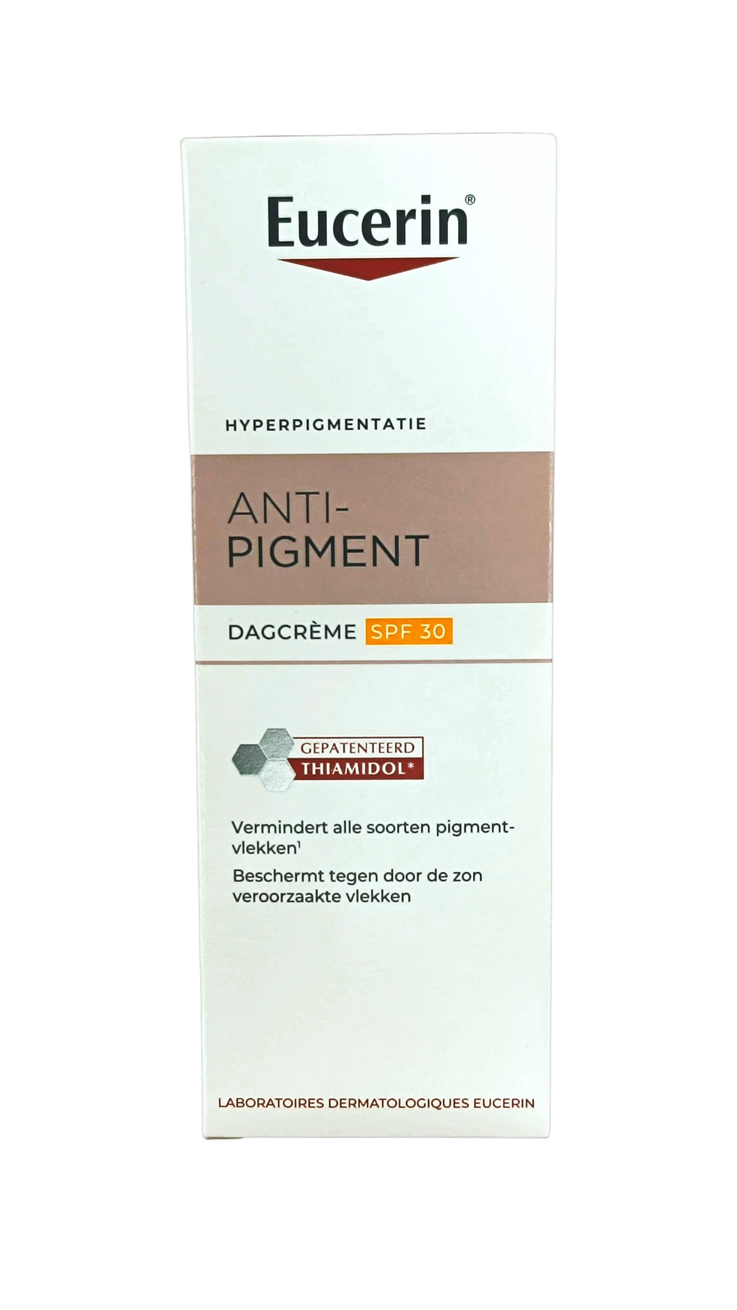 Eucerin Anti-pigment Soin de Jour SPF 30 est une crème hydratante pour le visage qui aide à réduire l'apparence des taches brunes et de l'hyperpigmentation. Cette crème est formulée avec de la thiamidol, un ingrédient actif qui agit à la source de l'hyperpigmentation en réduisant la production de mélanine dans la peau.
